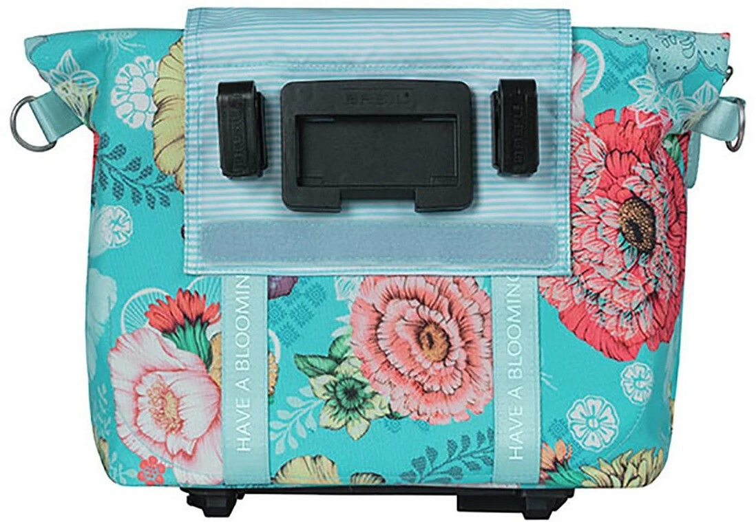 Du får en iøjnefaldende cykelhåndtaske, når du vælger Basil Bloom Field MIK! Tasken er lavet af genbrugsplast og har et håndmalet blomsterprint. Trods taskens kompakte størrelse er der stadig plads nok til at medbringe ting som nøgler, pung og mobiltelefon. Hovedrummet har en polstret lomme til en tablet. Tasken er også helt vandtæt, så du kan holde dine værdigenstande tørre, når du tager dem med dig.