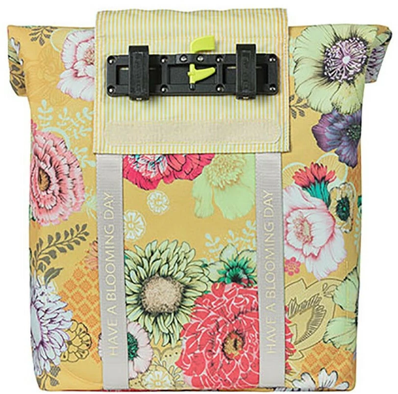 Basil Bloom Field er en livlig cykelshopper med et trendy blomsterprint. Blomsterprintet er håndmalet. Vidste du, at posen er fremstillet af genanvendt PET-plast? Cykeltasken kan bruges til alle slags formål. Shopper-tasken har et polstret rum til din bærbare computer eller tablet. Den samlede kapacitet på 15-20 liter giver dig mulighed for at pakke så meget mere: dagligvarer, bøger, madpakke og andet tilbehør. Den justerbare skulderrem gør det nemt at tage shopperen med dig overalt, hvor du går. Det er også vandtæt (IPX3) og udstyret med en vandafvisende foldespænde.