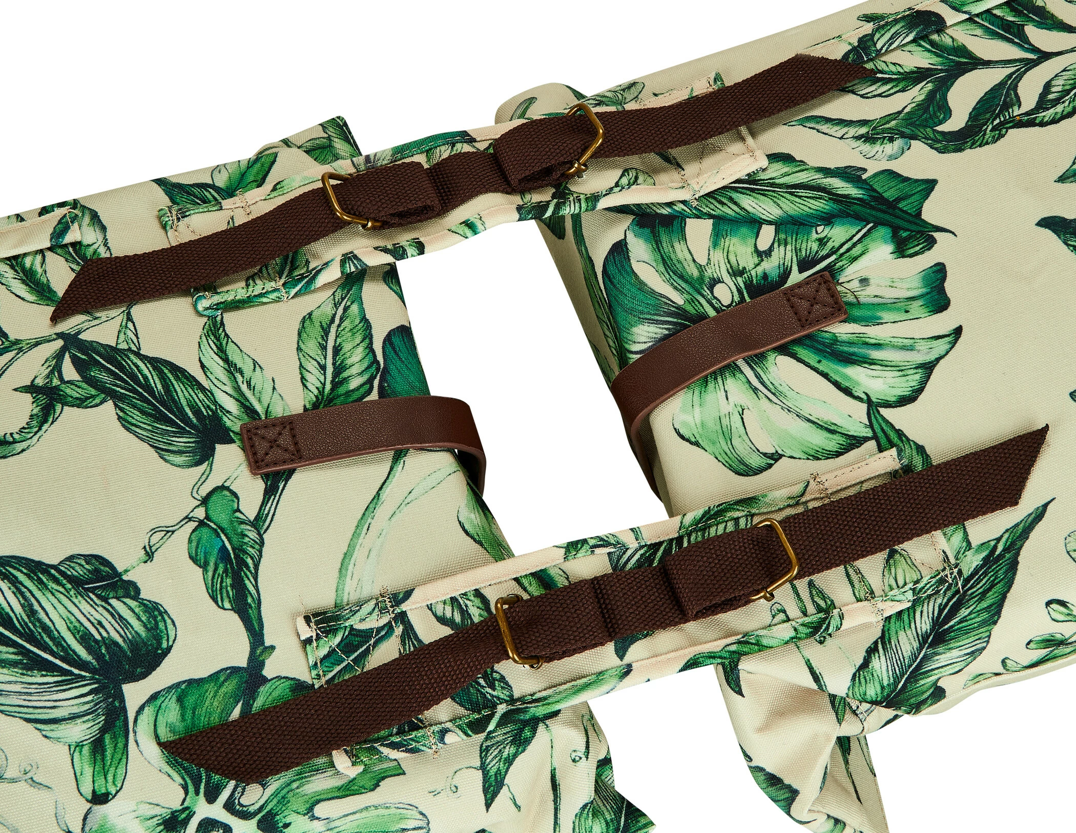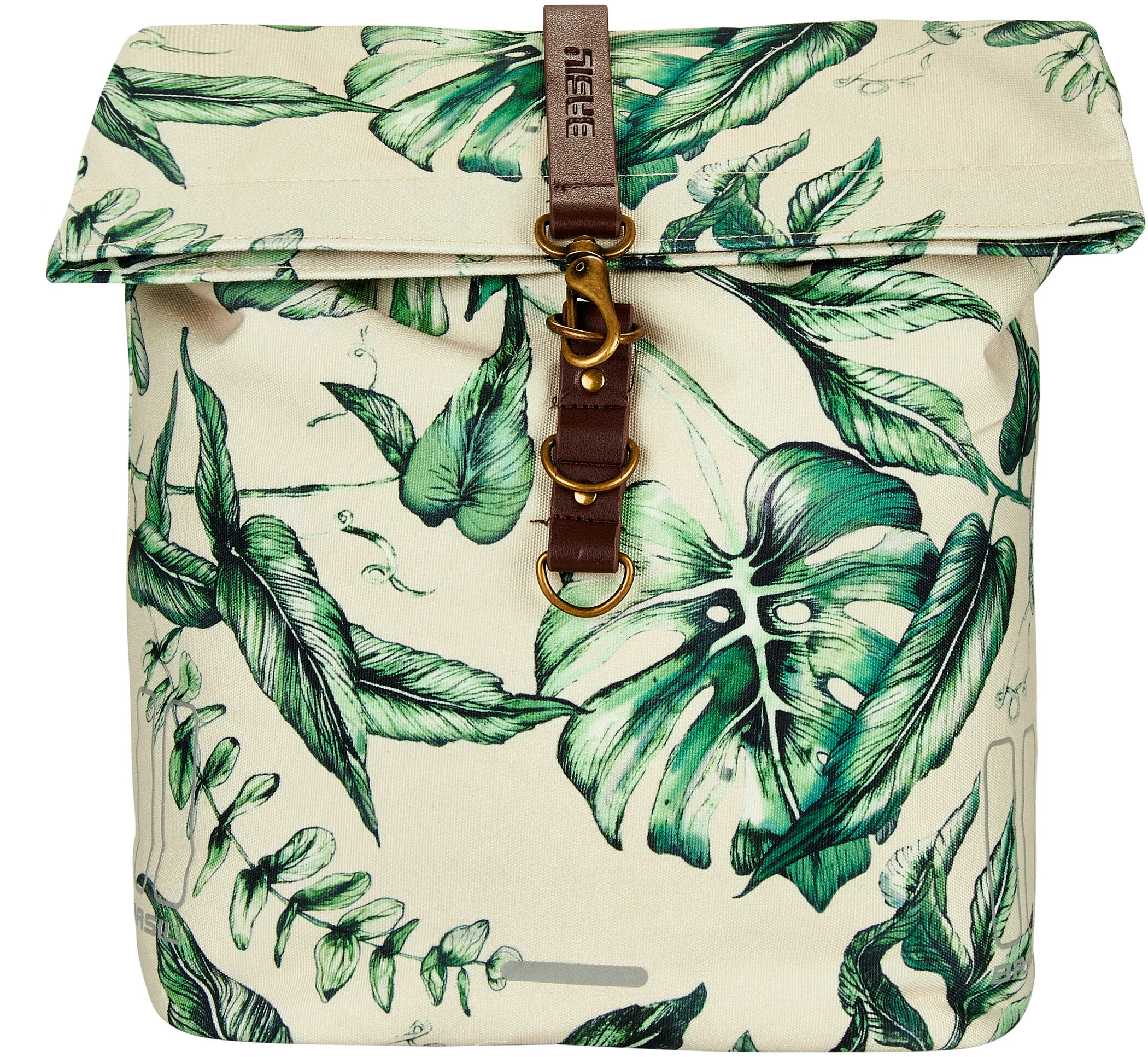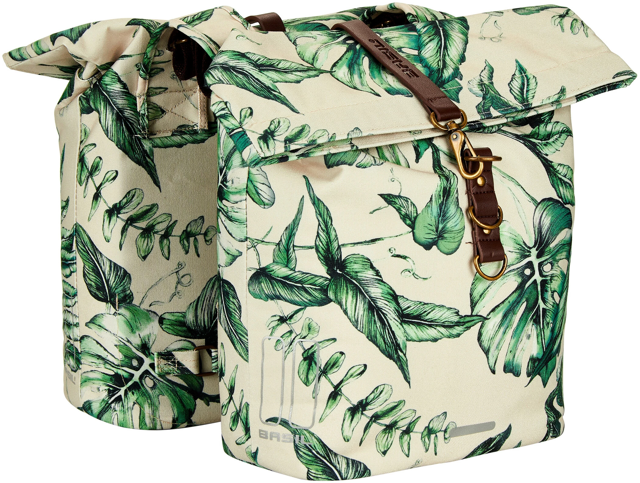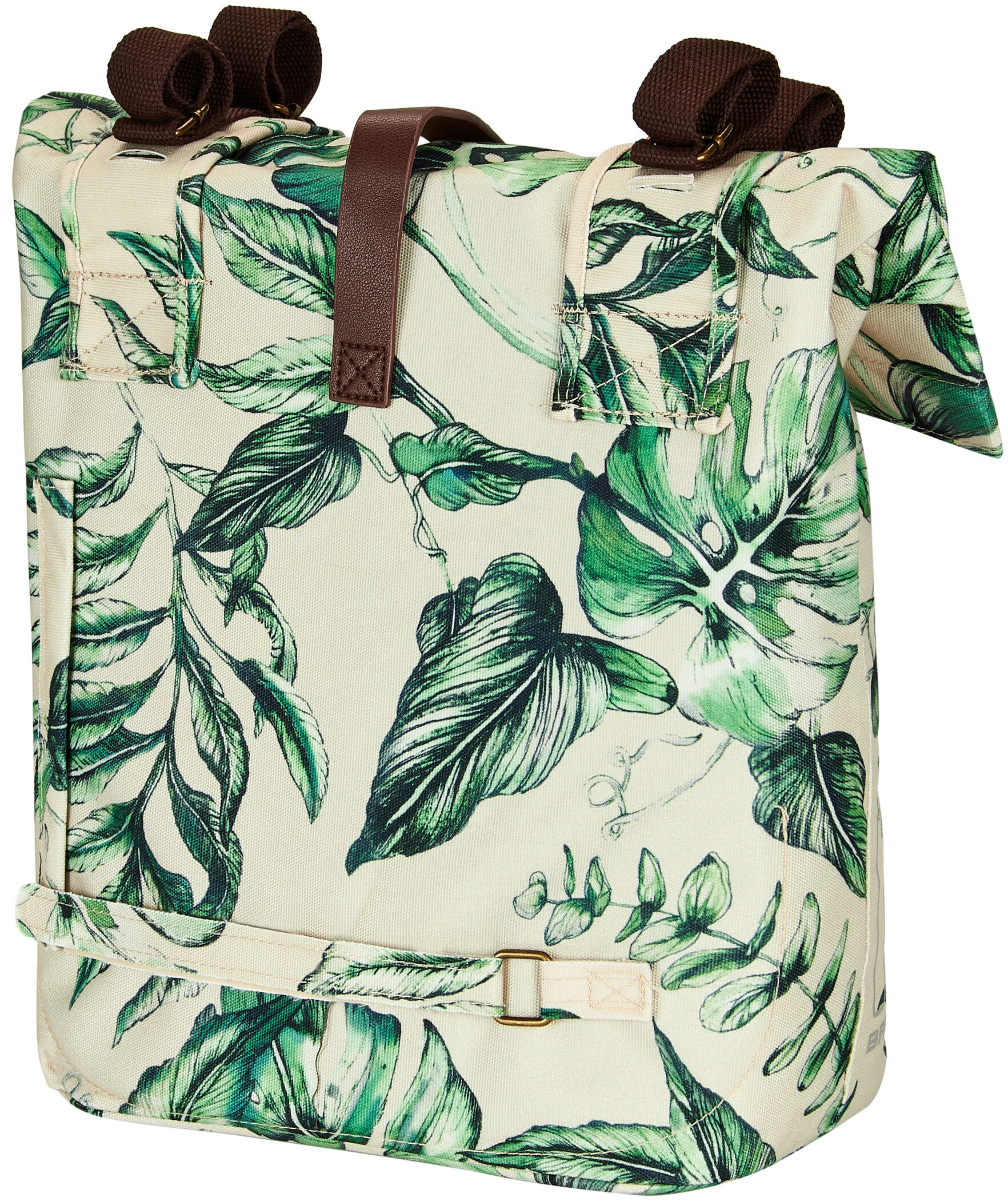 Med Basil Ever-Green vælger du en bæredygtig, meget speciel dobbelt cykeltaske! Det trendy planteprint på denne taske er håndmalet af den talentfulde hollandske maler Meggy Lemmens. Vidste du, at posen er fremstillet af 40% genbrugsplast af PET-plast? Det vandafvisende stof føles som bomuld. Men den indeholder ikke mindre end 39 genbrugte plastflasker i 350 ml størrelse. Andre kendetegn ved tasken er de veganske læderelementer og bronzedelene i antikt look. Det gør Basil Ever-Green dobbelt cykeltaske til en ægte statement!