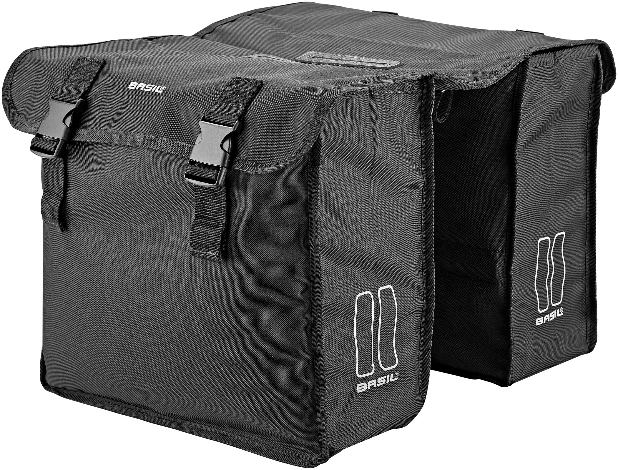 Basil Mara XL Double Bag er en stilfuld dobbelt taske til bagagebæreren på en dame- eller herrecykel. Den ekstra store kapacitet på 35 liter gør den ideel til opbevaring af alle dine indkøb. Den dobbelte cykeltaske er også en fordel, hvis du nyder lange weekendcykelture og er på vejen hele dagen. Både dit regntøj, dit dækreparationssæt og din madpakke kan opbevares sikkert i den. Basil Mara XL er fremstillet af vandafvisende polyester, som holder indholdet af dine tasker tørt i lang tid. Taskerne kan lukkes med kliklukning og fastgøres til cykelholderen med stropper. De dobbelte refleksstrimler på alle sider sikrer din synlighed i trafikken.