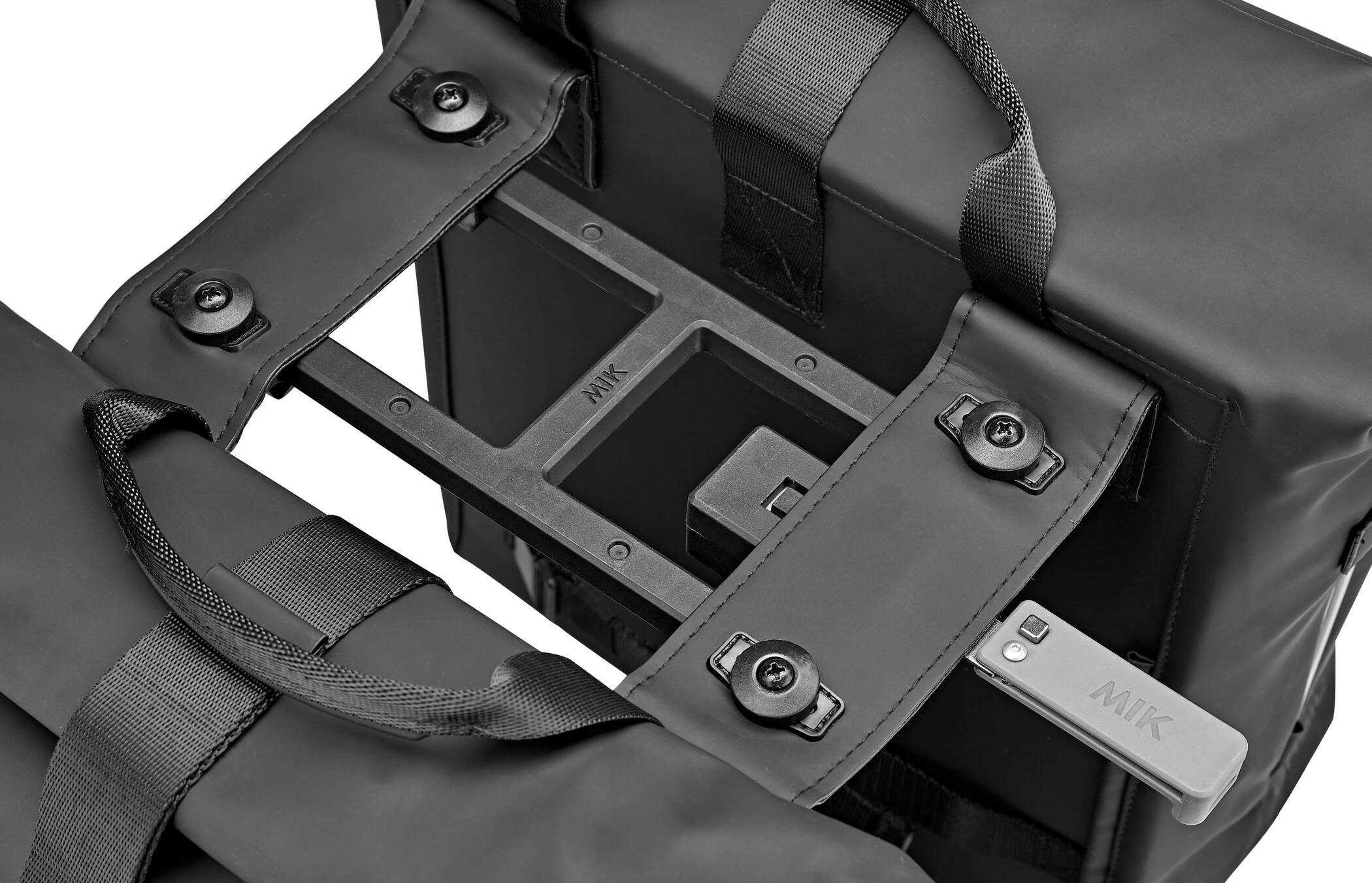 Takket være den forudmonterede MIK-adapterplade kan du nemt fastgøre tasken. Med denne adapterplade klikker du blot tasken ind i din bagagebærer med MIK-profiler eller med en MIK-bærerplade. Vil du tage tasken med i butikken? Derefter skal du blot klikke på den igen. MIK-adapterpladen passer til mange bagagebærere til damer, herrer og elcykler.