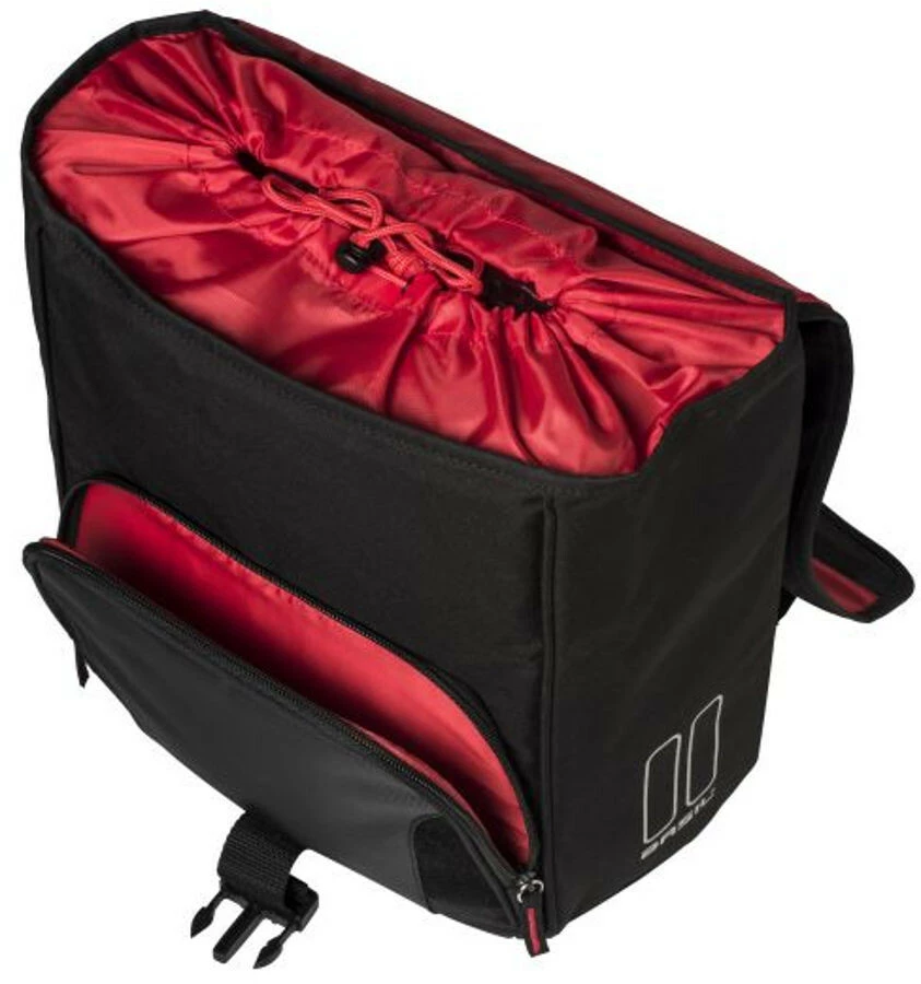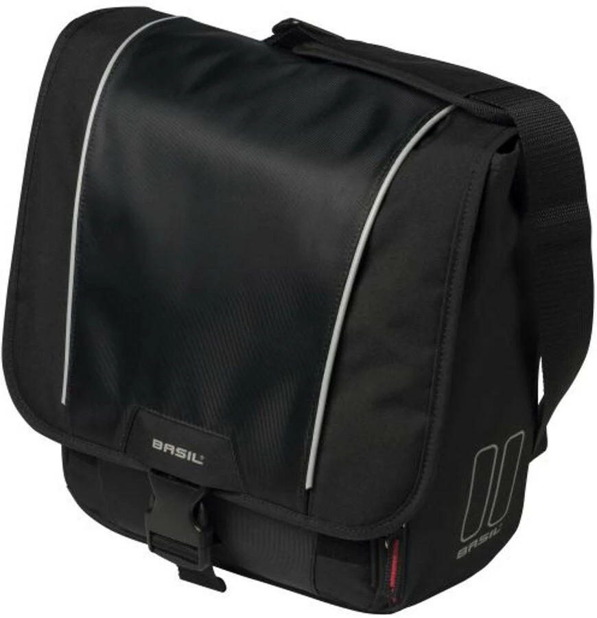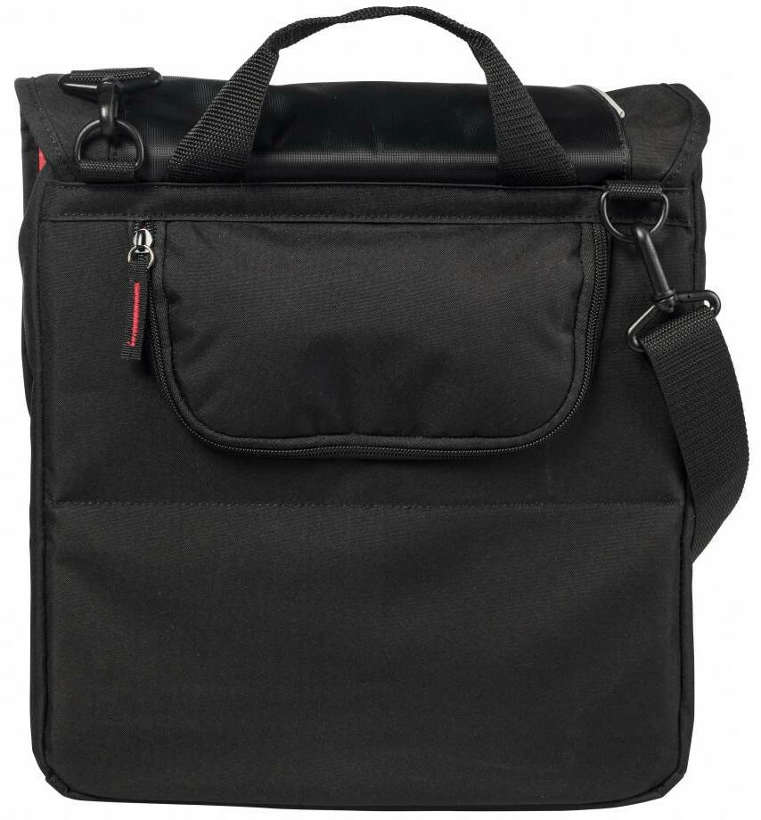 Basil Sport Design Commuter Bag er en praktisk sort taske til bagagebæreren på en cykel. Takket være skulderremmen kan tasken også let bæres over skulderen og kan derfor tages med overalt. Nyder du at cykle til kontoret, skolen eller togstationen hver dag og kunne bruge en cykeltaske? Dann ist die Basil Sport Design Commuter Bag sicher etwas für Sie. Denne stilfulde taske er fremstillet af polyester i vandafvisende polyester. Es ist darüber hinaus noch eine wasserdichte Regenhülle vorhanden, die dafür sorgt, dass Ihre Tasche und auch der Inhalt Ihrer Tasche stets trocken bleiben. Die Fahrradtasche verfügt über ein Hauptfach mit einem Kordelzug und darüber hinaus noch über einige zusätzliche Fächer. Der Gesamtinhalt beträgt 18 liter. I det vandfyldte fag kan du f.eks. prima din tablet eller bærbare computer blive brugt. Neben einem Schultergurt ist die Tasche auch noch mit einem praktischen Handgriff udstyret. Derfor kan De bære dem, som De ønsker. Diese Commuter Bag lässt sich leicht mit Hilfe von Haken am Gepäckträger Ihres Fahrrads befestigen. Dies betyder, dass Sie sie auch leicht wieder davon abnehmen können.