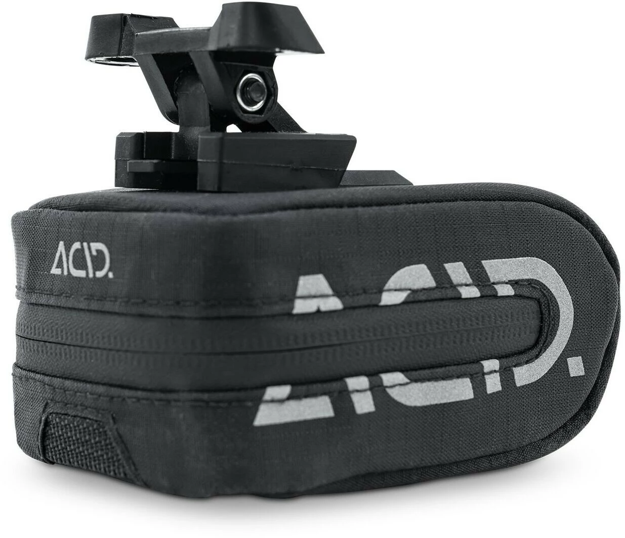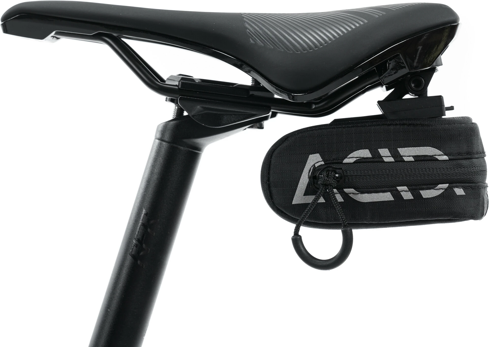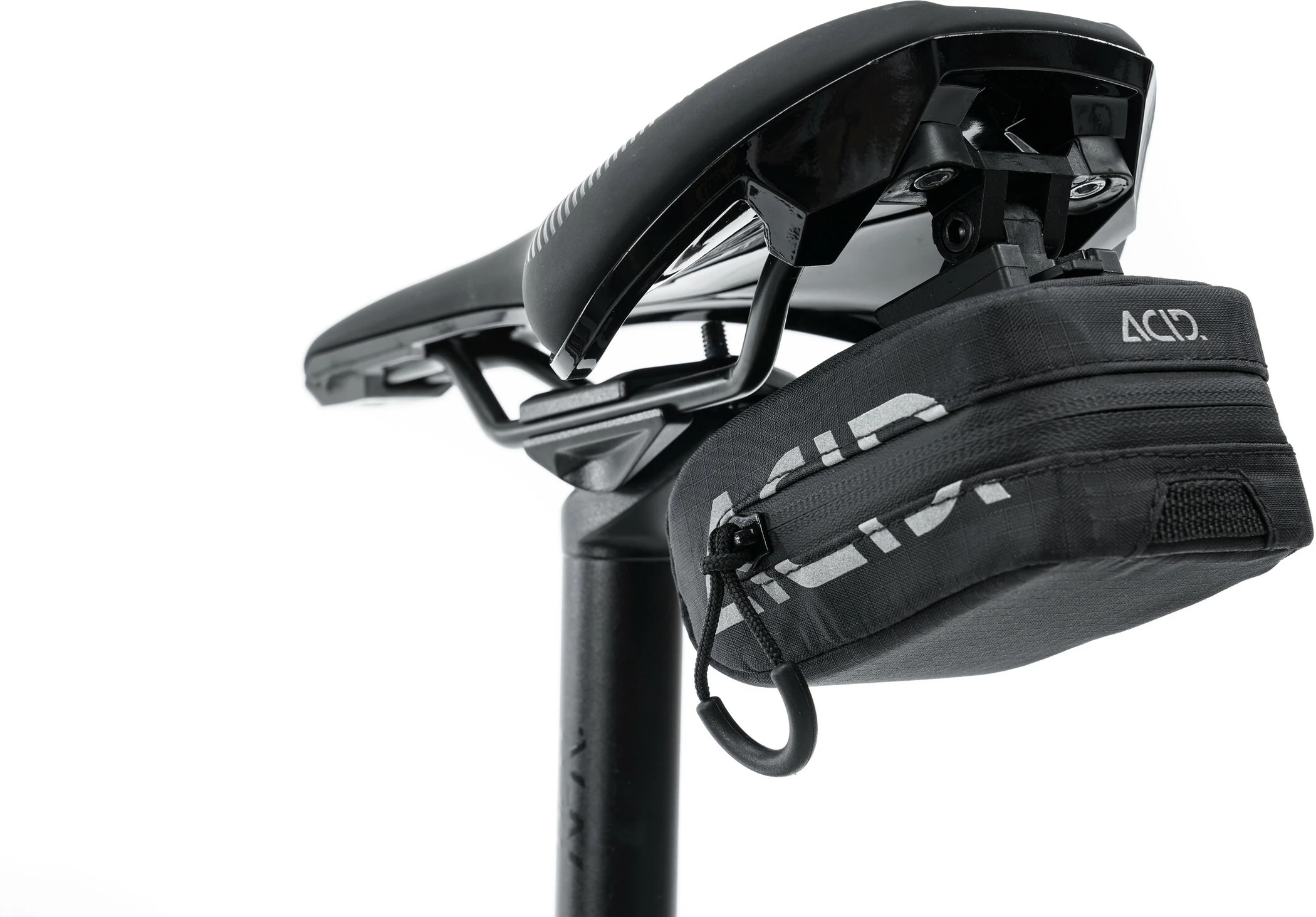 Pak det mest nødvendige. ACID CLICK XS-sadeltasken holder dine ejendele sikkert opbevaret under sadlen, hvor de ikke er i vejen. Det kompakte design, den vandafvisende lynlås og baglygteholderen er typiske detaljer, der gør en saddeltaske fra ACID til noget særligt.