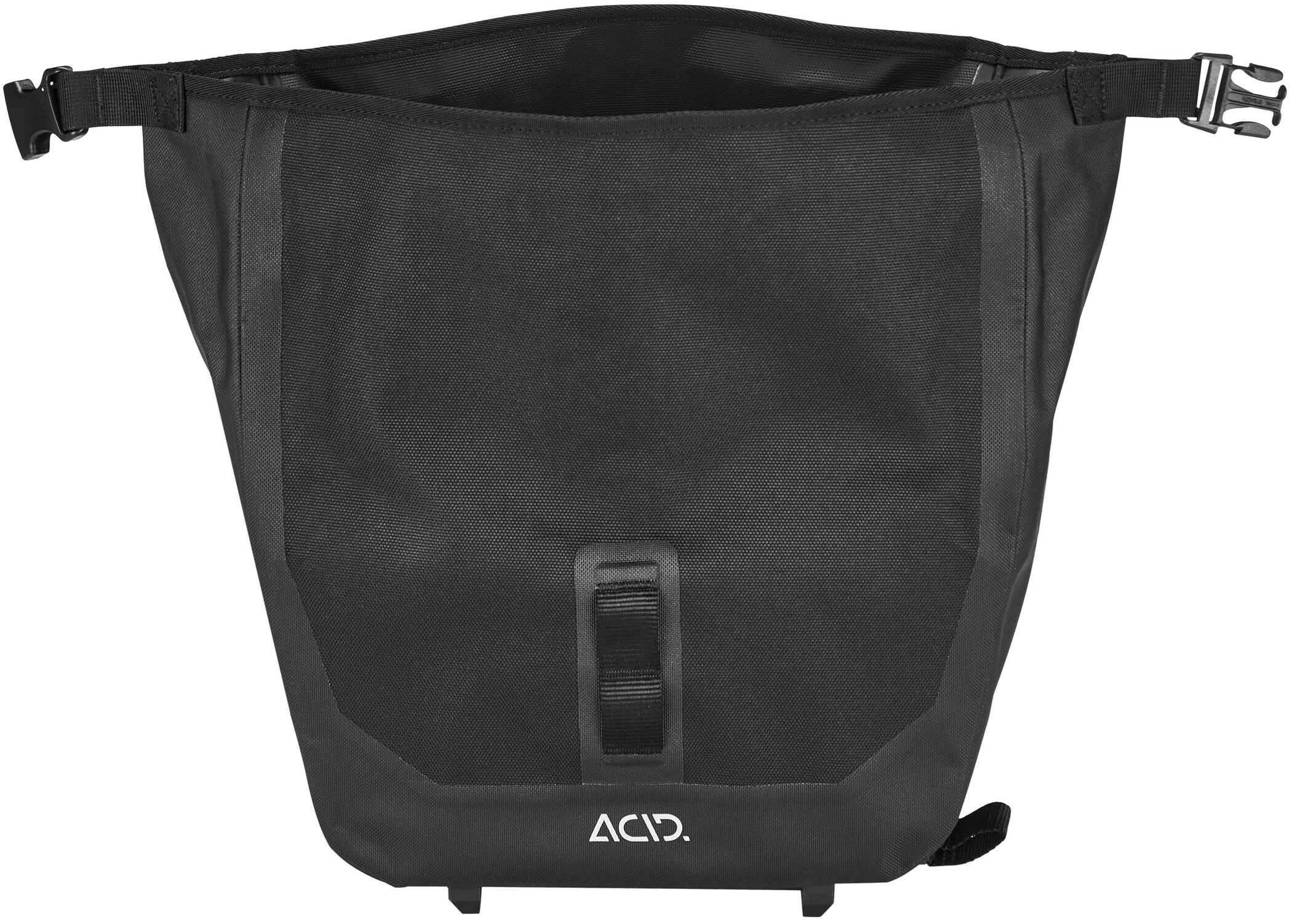 Det vandtætte ydre af ACID TRUNK 10 holder dine ting tørre, mens ACID RILink-adapteren sikrer hurtig og nem fastgørelse til ACID-bærere. Og med en praktisk skulderrem til at starte med er tasken lige så praktisk at bære uden for cyklen.