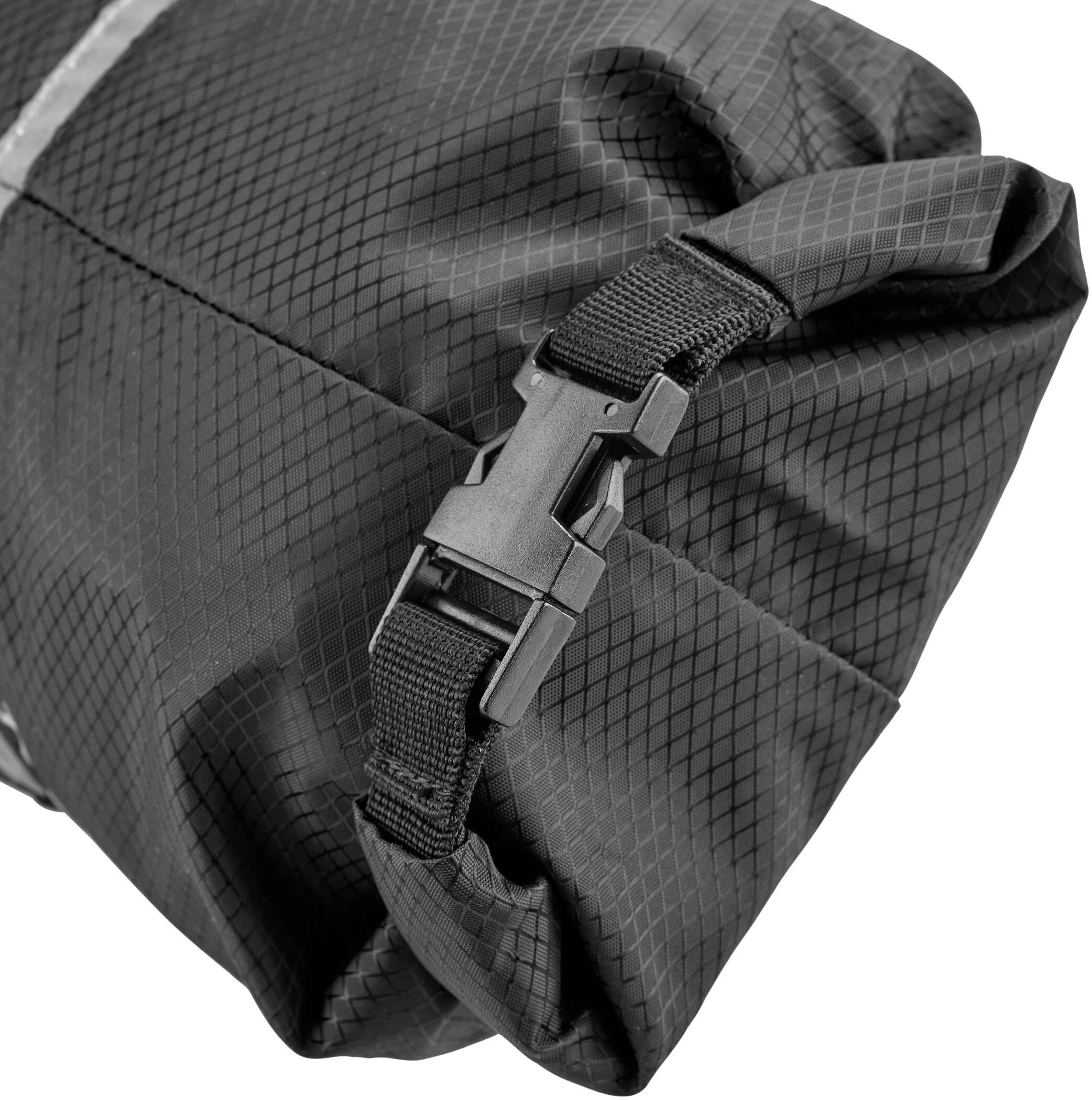 Taske med middelstor kapacitet til styretøj, der er designet med henblik på brugervenlighed og maksimal funktionalitet. Lettilgængelige, dobbeltsidede rullekapsler af rulletypen. Meget vandafvisende, komprimerbart design. Holdbare materialer af høj kvalitet. Justerbare stropper og et enkelt velcrobåndsmonteringssystem. Eksterne træksnore holder ekstra udstyr. Reflekterende funktioner og lygtebeslag giver ekstra sikkerhed