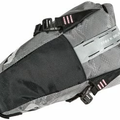 Taske af høj kvalitet med spændesystem til fastgørelse på sadelskinner og sadelpind. Caddy EX er fremstillet af en holdbar vævet nylonkonstruktion. Mærkede indvendige lommer til organisering. Reflekterende logoer og sløjfer øger synligheden om natten. Vandtæt lynlås har en stor trækstrop.