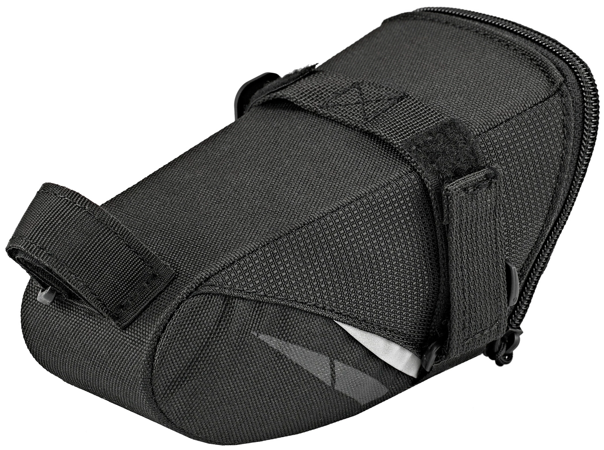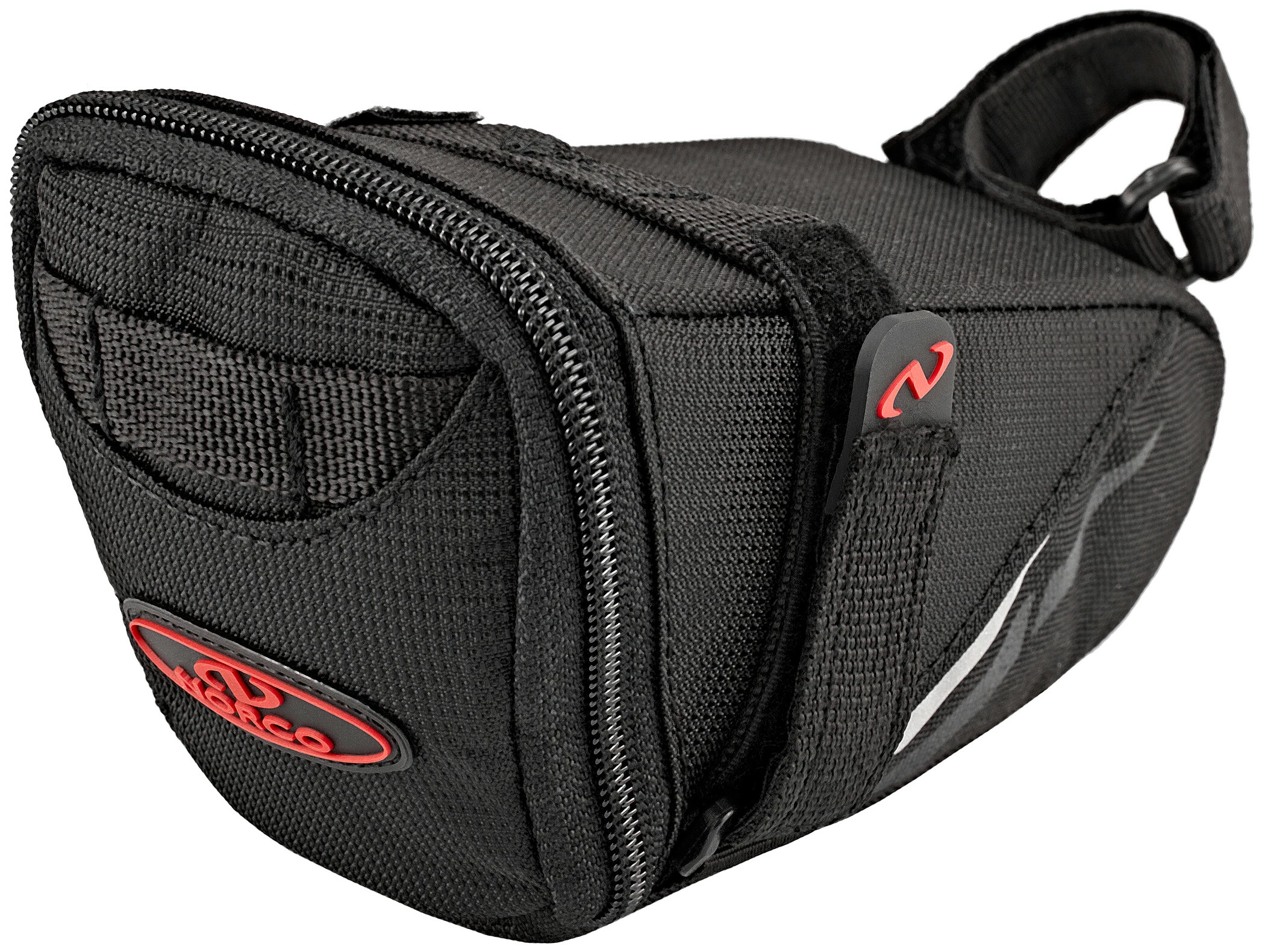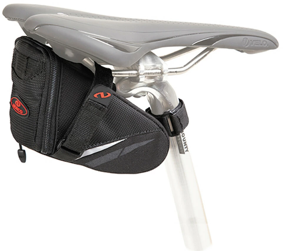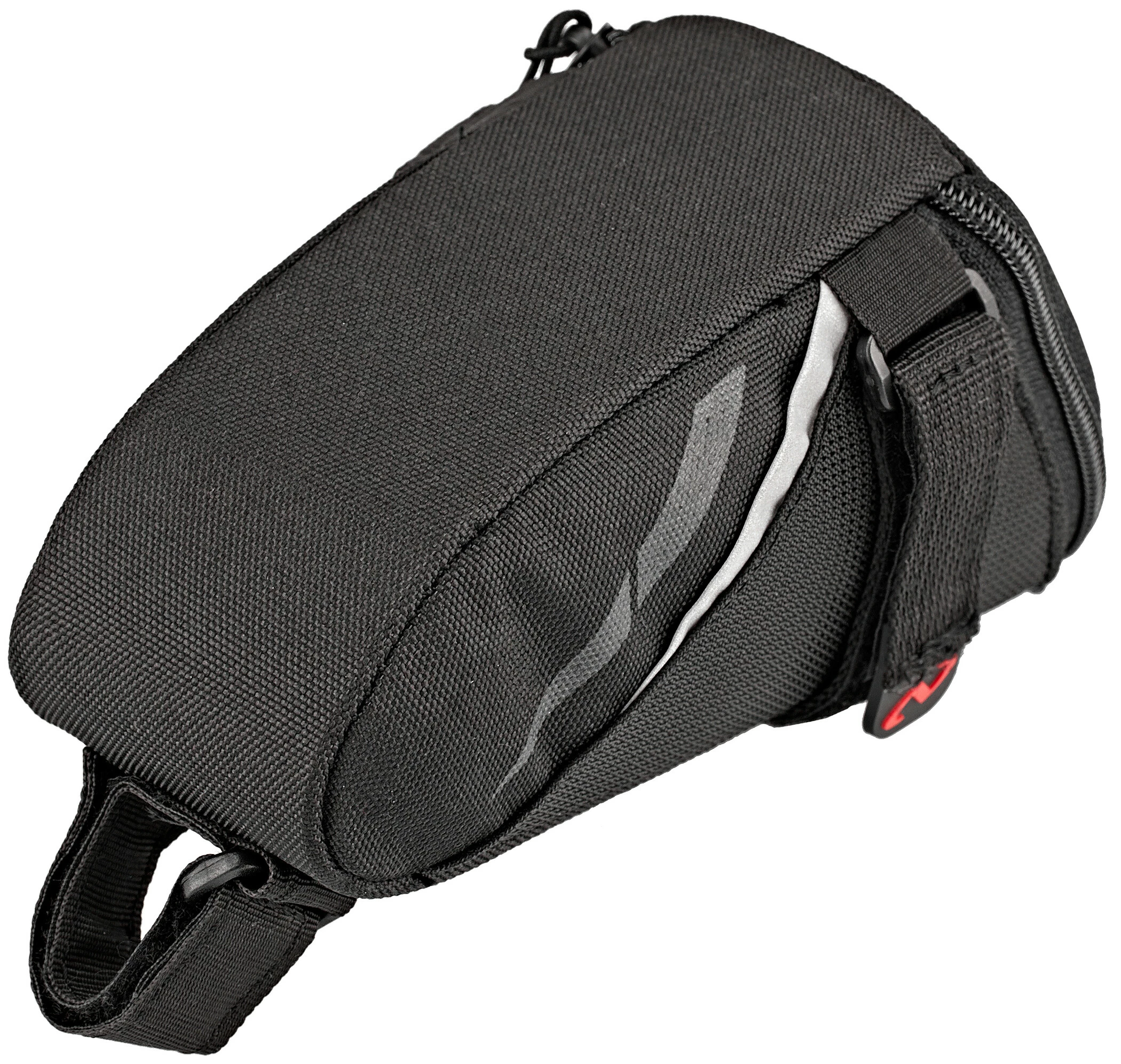 Strømlinet saddeltaske med stort hovedrum og velcrolukning.
