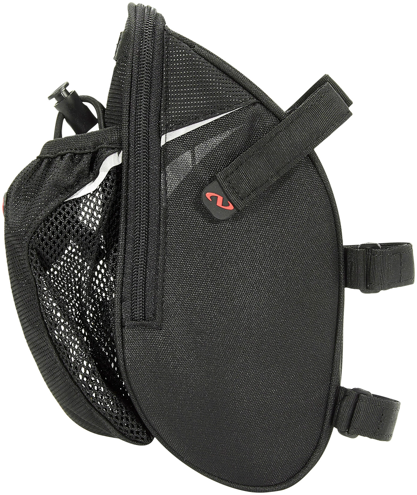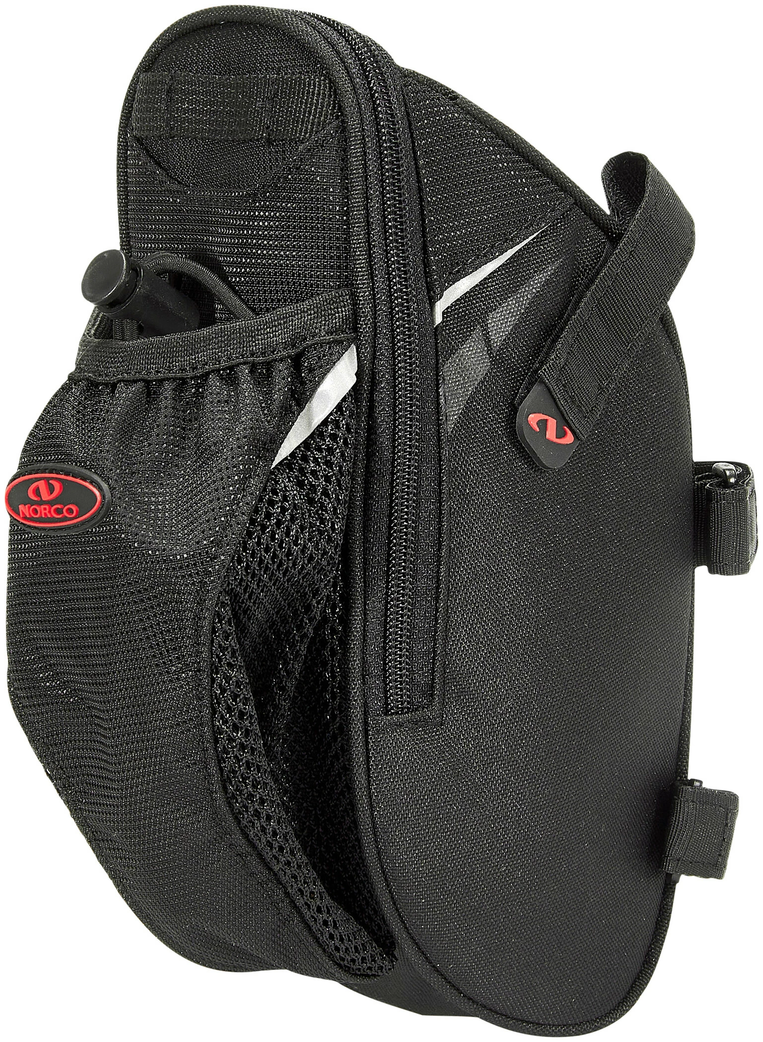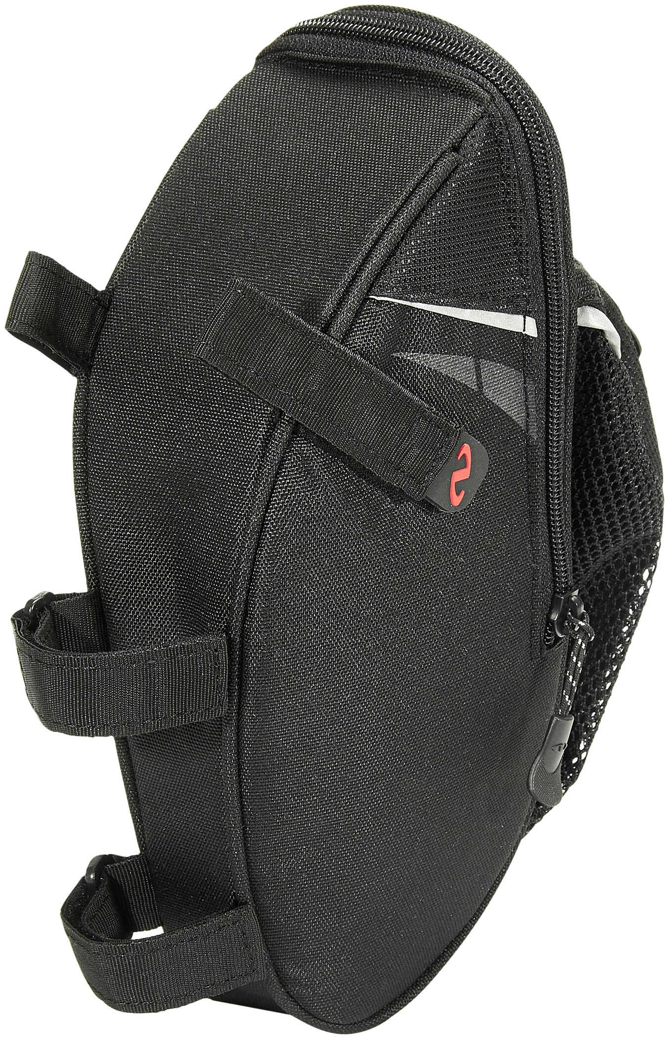 Moderne saddeltaske med strømlinet design og integreret flaskeholder.