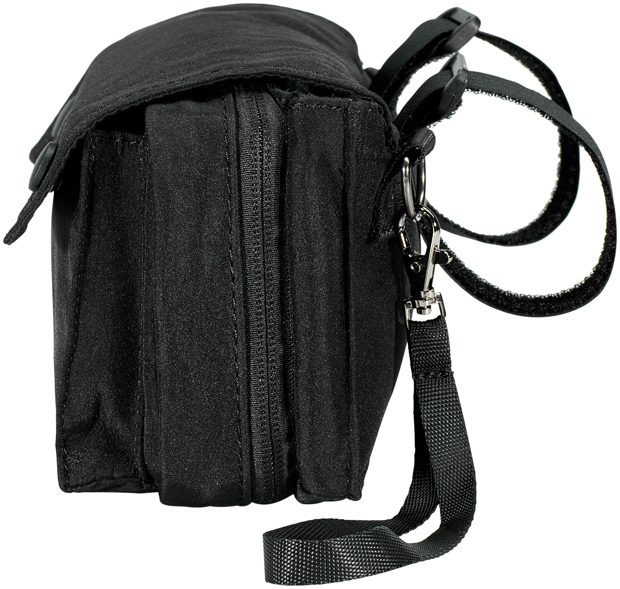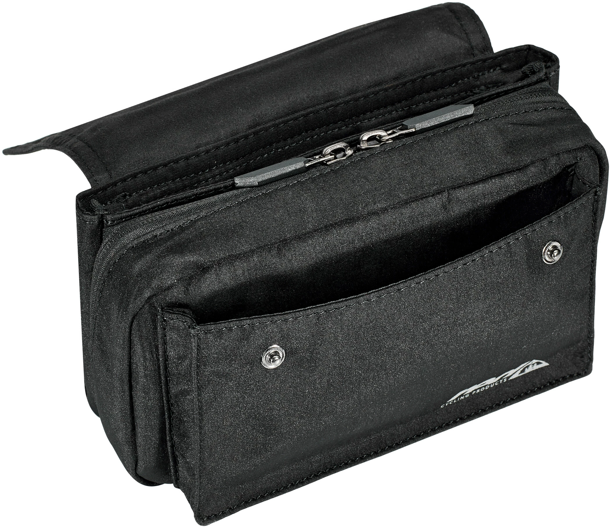 Tasken kan fastgøres til styret med korte og aftagelige velcroremme og har tre rummelige rum med et samlet rumindhold på 1,4 liter, hvilket gør det lettere at sortere nøgler, mobiltelefon og co. Der medfølger et regnslag, hvis du skulle blive fanget i en regnbyge.