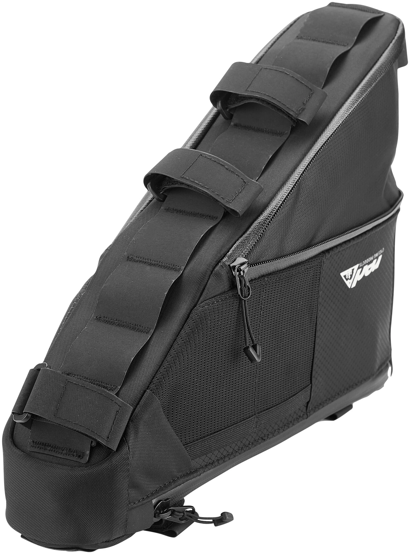 Med denne rammetaske skaber du lynhurtigt mere opbevaringsplads på din cykel. Takket være dens fleksibilitet kan du tilpasse den til en lang række forskellige cykler og formål. Hvis du bare har brug for lidt ekstra plads, fx til et par energibarer og en telefon, passer den i sin oprindelige tilstand ind i den forreste rammetrekant. På denne måde er den ikke engang i vejen for en vandflaske i flaskeholderen på de fleste cykler. I den forreste netlomme er der plads til små ting, som du har brug for hurtigt at få fat i. Takket være en lynlås på siden af tasken er selve indholdet i tasken også altid lige ved hånden. På længere ture kan bunden foldes ud – tasken er selvfølgelig stadig vandtæt, så du kan tage på cykeleventyr i al slags vejr.