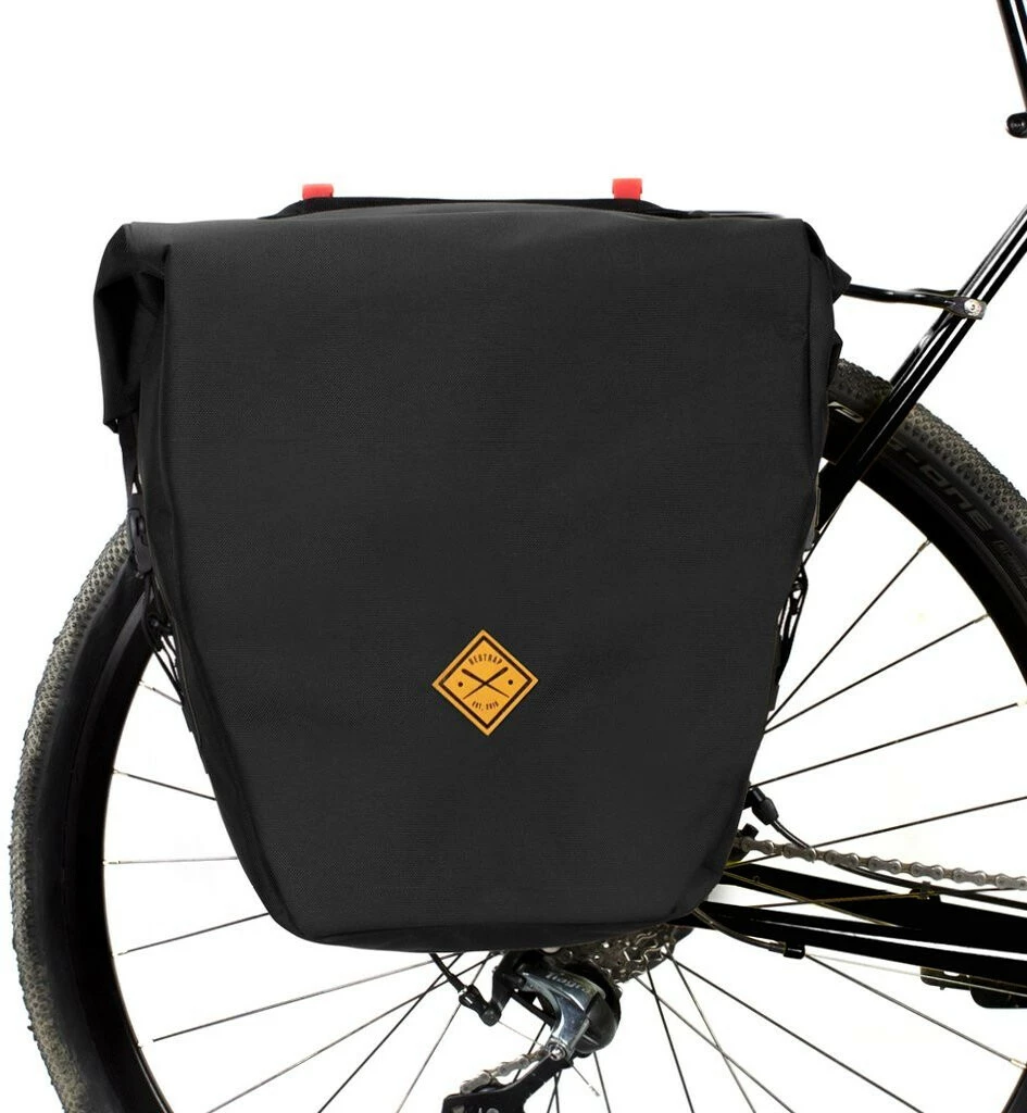 Denne taske med rullelukning er udviklet af Restrap med styrke, stabilitet og holdbarhed i tankerne. Den kan monteres på både for- og bagagebærer. Takket være spænderne med sideudløser og det individuelt justerbare krogssystem sidder tasken sikkert på skinner med en tykkelse på 10-16 millimeter. Forstærket på den nederste inderste kant for ekstra beskyttelse, hvor tasken ofte gnider mod stellet. Selv kraftig regn kan ikke skade tasken og din bagage, fordi materialerne er helt vandtætte.