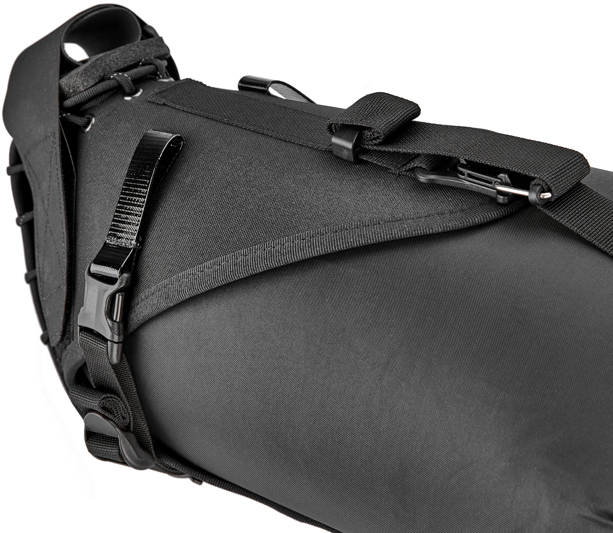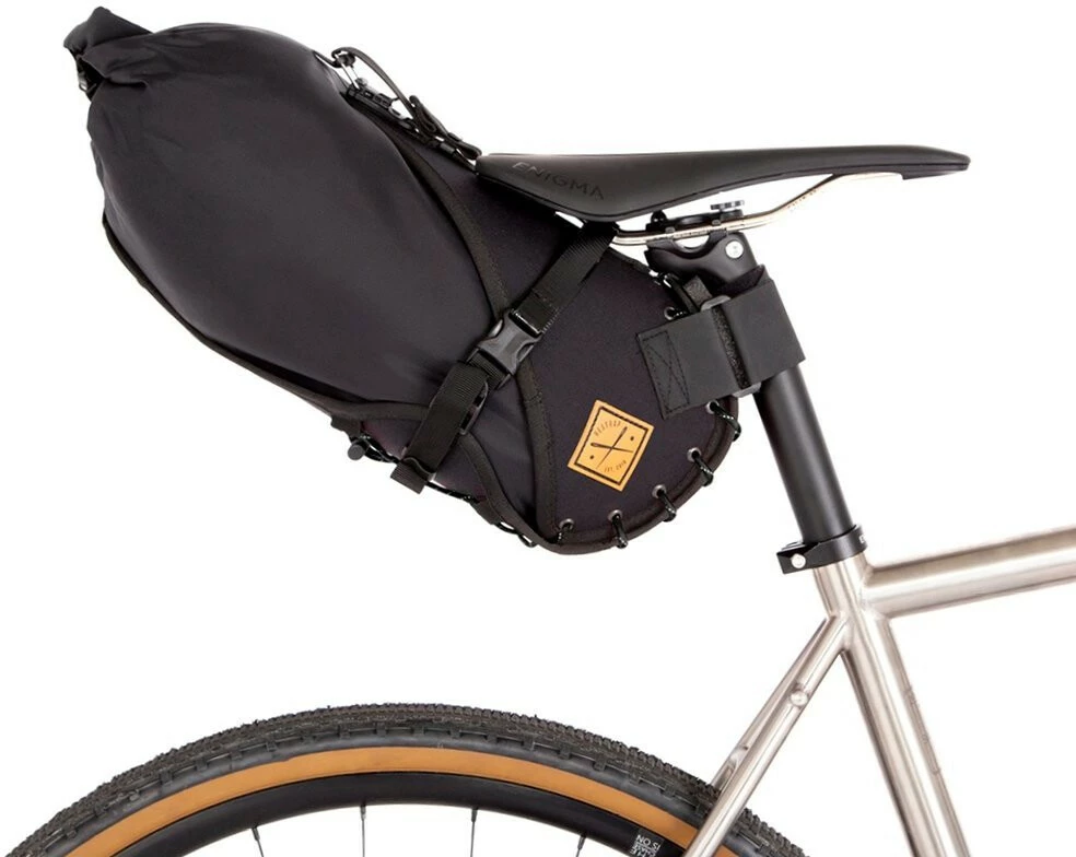 Den rackløse sadeltaske kan fastgøres sikkert til sadelpinden, så du kan pakke din cykel, tage på tur eller pendle. Tasken er uden beslag eller skruer og kan monteres på få sekunder på enhver cykel. Holsteret passer til op til en 8 liters tørretaske og er sikret med et patenteret magnetisk spænde, der er let at justere, selv når du har handsker på. Tasken er hardcase for nem lastning og er fastgjort med reflekterende militær paracord og forstærkede snørehuller. Dette produkt er fremstillet af 1000D cordura i militærkvalitet og med nylonbånd for ekstra styrke, og det er lavet til at holde længe.
