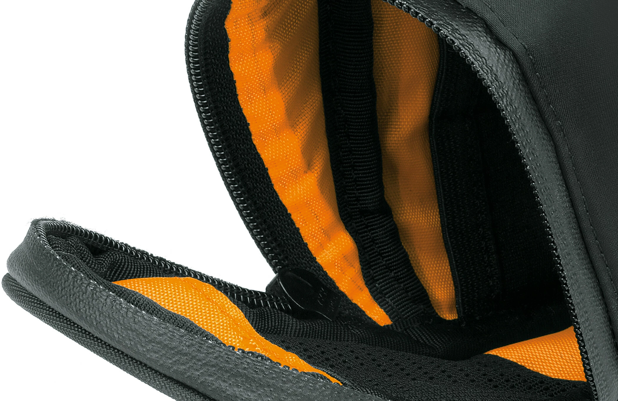 Let, funktionel og aerodynamisk. Den slanke RACER-cykeltaske er fremstillet af slidstærkt, vandafvisende stof, der passer godt til en racercykel. Giver tilstrækkelig plads til værktøj, udskiftningsrør og personlige genstande. Reflekselementer som SKS-logoet øger sikkerheden. Den stilfulde taske har også lamineret lynlås med ergonomisk easy-zip, sikker inderlomme og orangefarvet foring, der gør det nemmere at finde tingene.