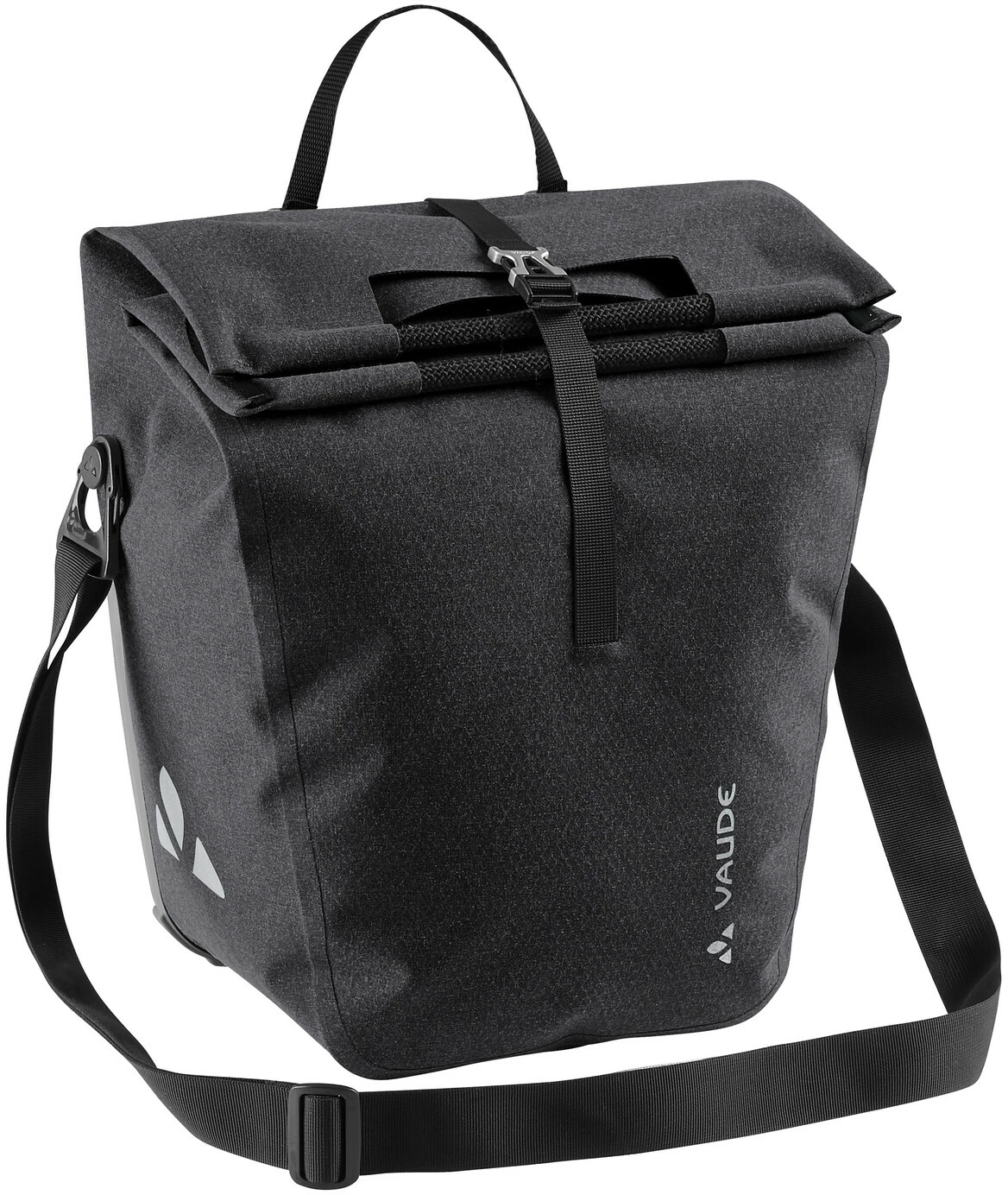 De stilfulde tasker i shopper-design er udstyret med robuste, bløde polyesterhåndtag med stropper, en rund halsudskæring for bedre adgang og en støvpose for bedre fastholdelse af indholdet. Den aftagelige skulderrem og de reflekterende logoer fuldender funktionerne. Tasken er en del af Vaude’s Made in Germany-serie. Med en lille U-lås (f.eks. Abus 145/20) kan ReCycle Back låses direkte på QMR-krogen.