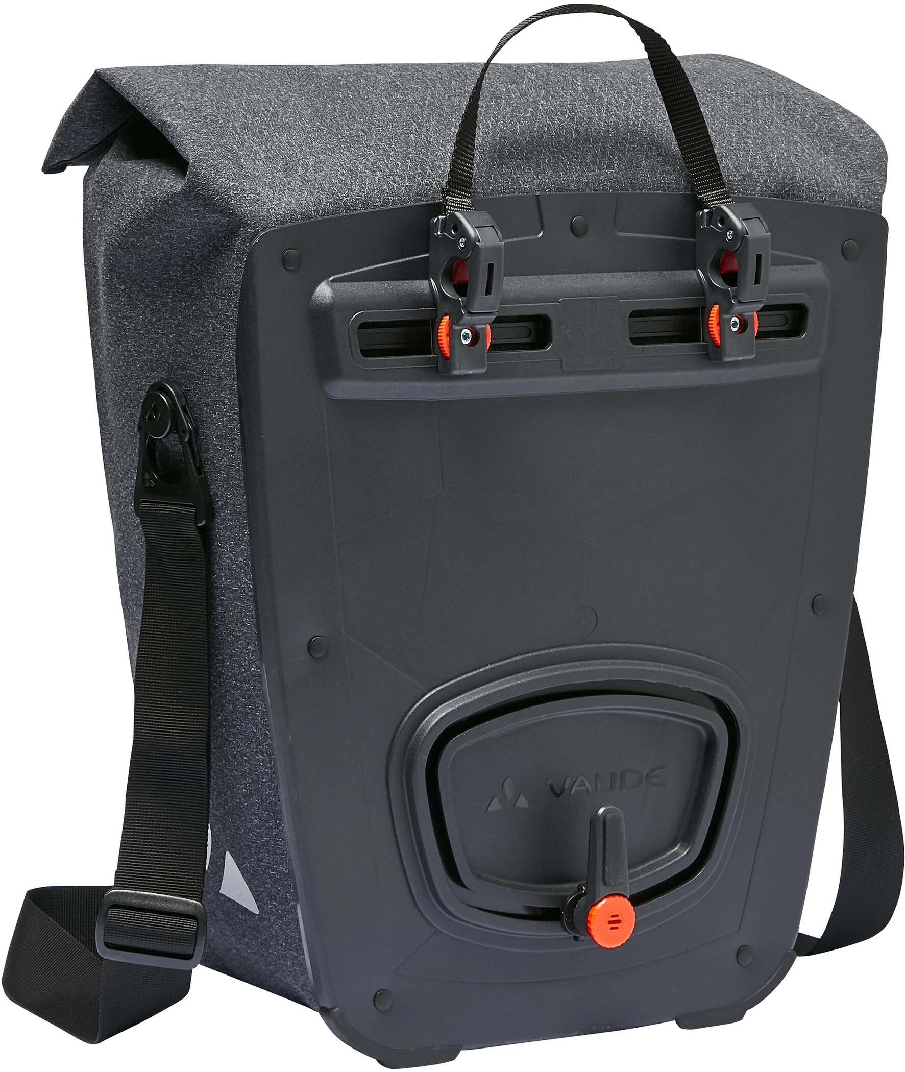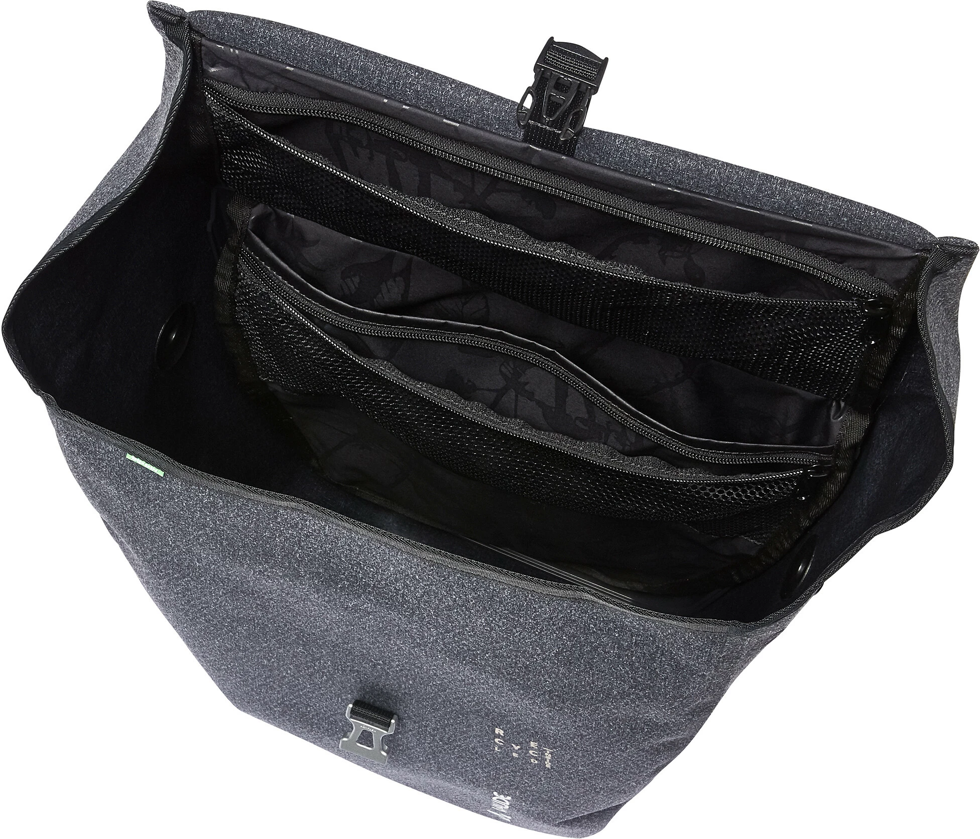 Den stilfulde taske med et elegant design har en lettilgængelig klaplukning med låg, et stort hovedrum og en lille lynlåslomme. En aftagelig skulderrem og reflekterende logoer fuldender funktionerne. Tasken er en del af vores Made in Germany-serie, hvilket betyder, at den er klimaneutralt fremstillet i virksomhedens hovedkvarter i Tyskland. Leveringen omfatter: 1 taske med 22 l volumen, som kan fastgøres til venstre eller højre på dit gearstativ. ReCycle Pro kan låses direkte til QMR-krogen ved hjælp af en U-lås (som f.eks. Abus 145/20).