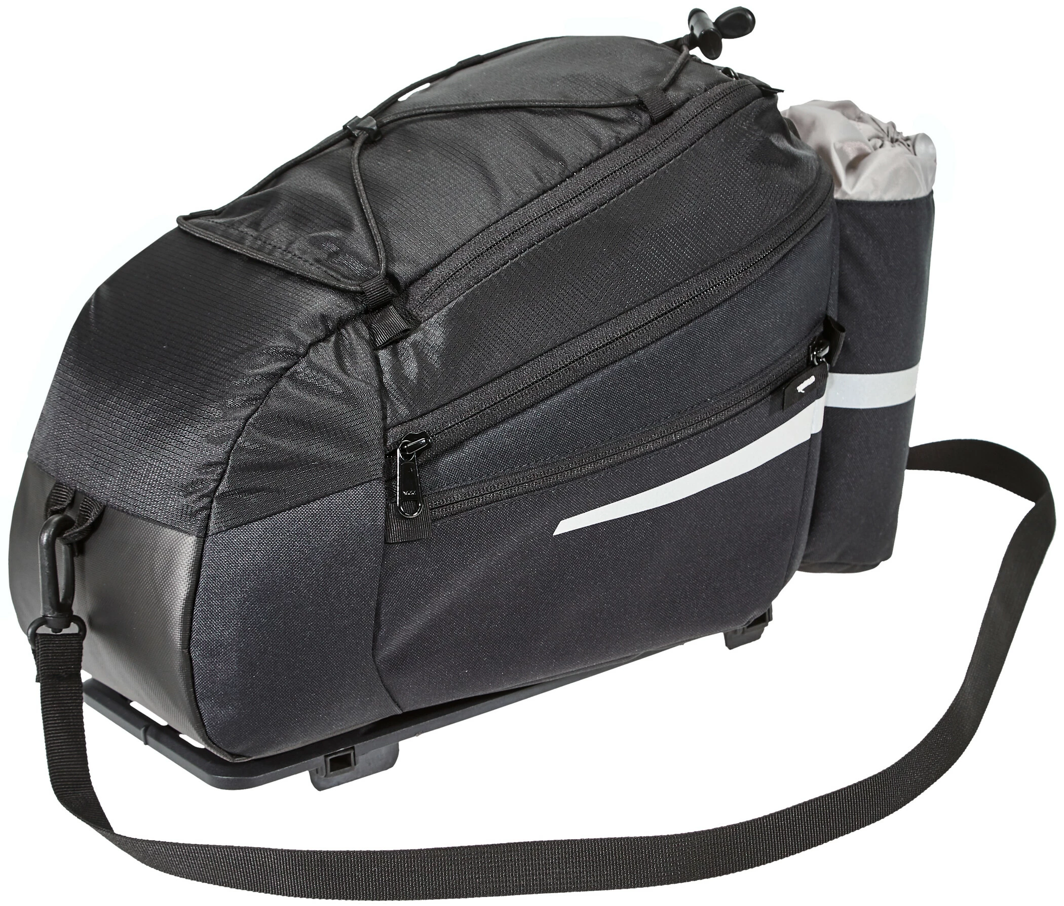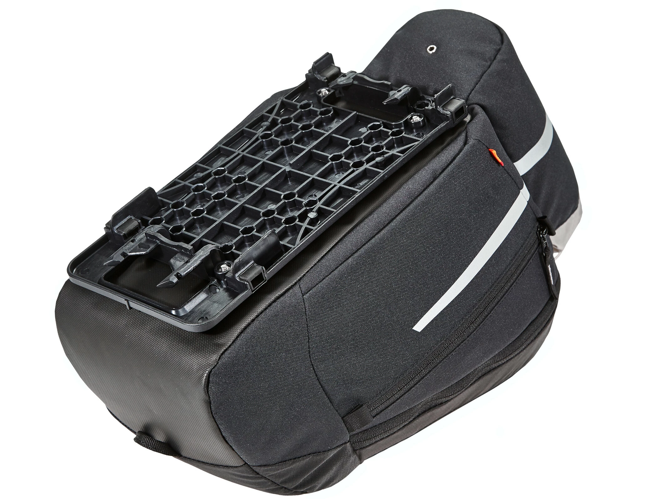 Tager luget ud af bagagen. Denne racktaske med 9+2 liter transportkapacitet og drikkevareholder kan fastgøres til dit gearstativ med i-Rack-Adapteret. Det er også en god størrelse til at opbevare dit e-back-batteri i den. Der medfølger også et transportnet til mere opbevaring. Kun til i-Rack-udstyrsreoler.