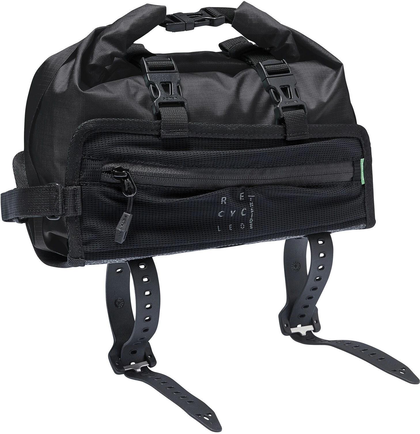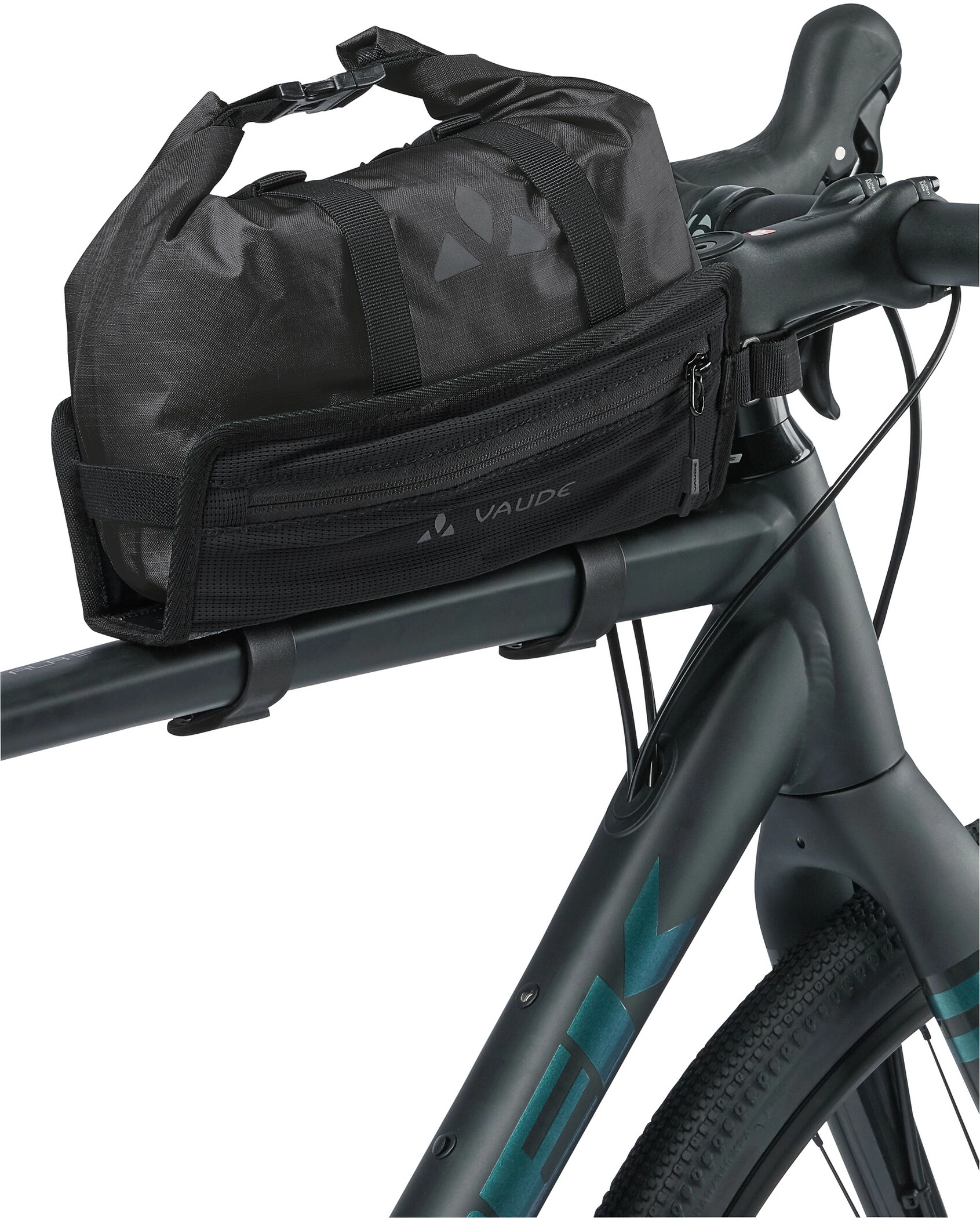 Trailguide er en cykeltaske til at dø for! Med sin slanke størrelse på 3 liter er den perfekte puslespilsbrik for alle dem, der ønsker at fordele deres bagage fornuftigt på cyklen og sætter pris på sikkerhed. Den rummer alle de vigtige ting som rejsedokumenter, smartphone eller tegnebog, som du gerne vil have hurtigt ved hånden og altid i sigte. Trailguide-holderen er fastgjort til toprøret med 2 stropper og sikkert fastgjort til styrrøret med en velcrolukning for at forhindre, at den glider. To små elastiske sidelommer holder stænger eller chapstick ved hånden. Den vandtætte cykeltaske er sikret med en lynlås, og afhængigt af lasten – max. 3 liter – er pakket vandtæt ind og fastgjort i holderen med to spændebånd. Hvis du har brug for at købe noget hurtigt under et stop, kan du hurtigt tage tasken ud af holderen og sætte den på med den medfølgende bærerem.